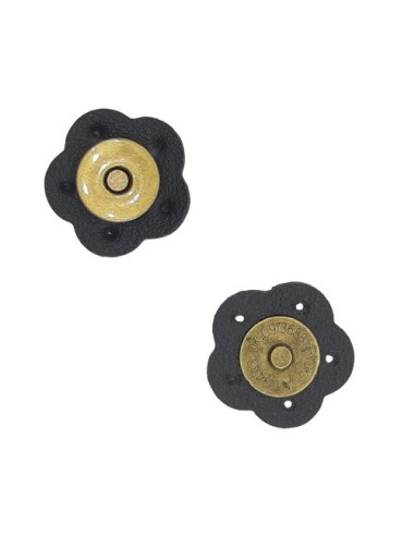 Broche cierre magnético con imán. Broche decorativo para coser con piel marrón y imán en color oro viejo.