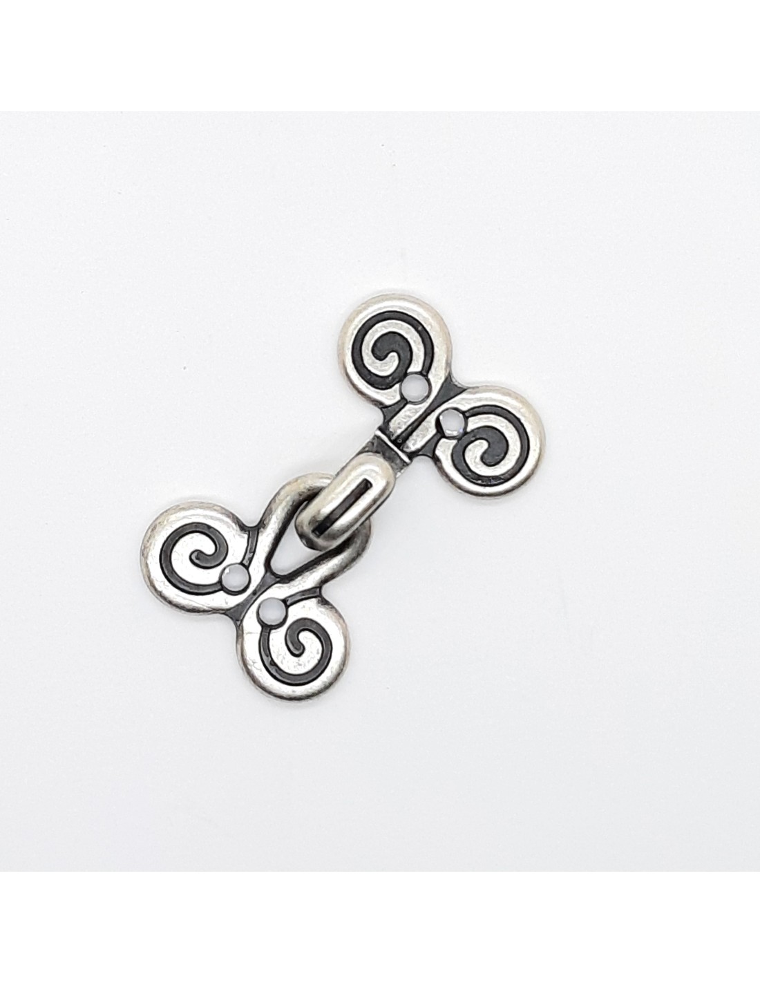 Cierre corcheta metálico de color plata para coser de 32 x 20 mm.