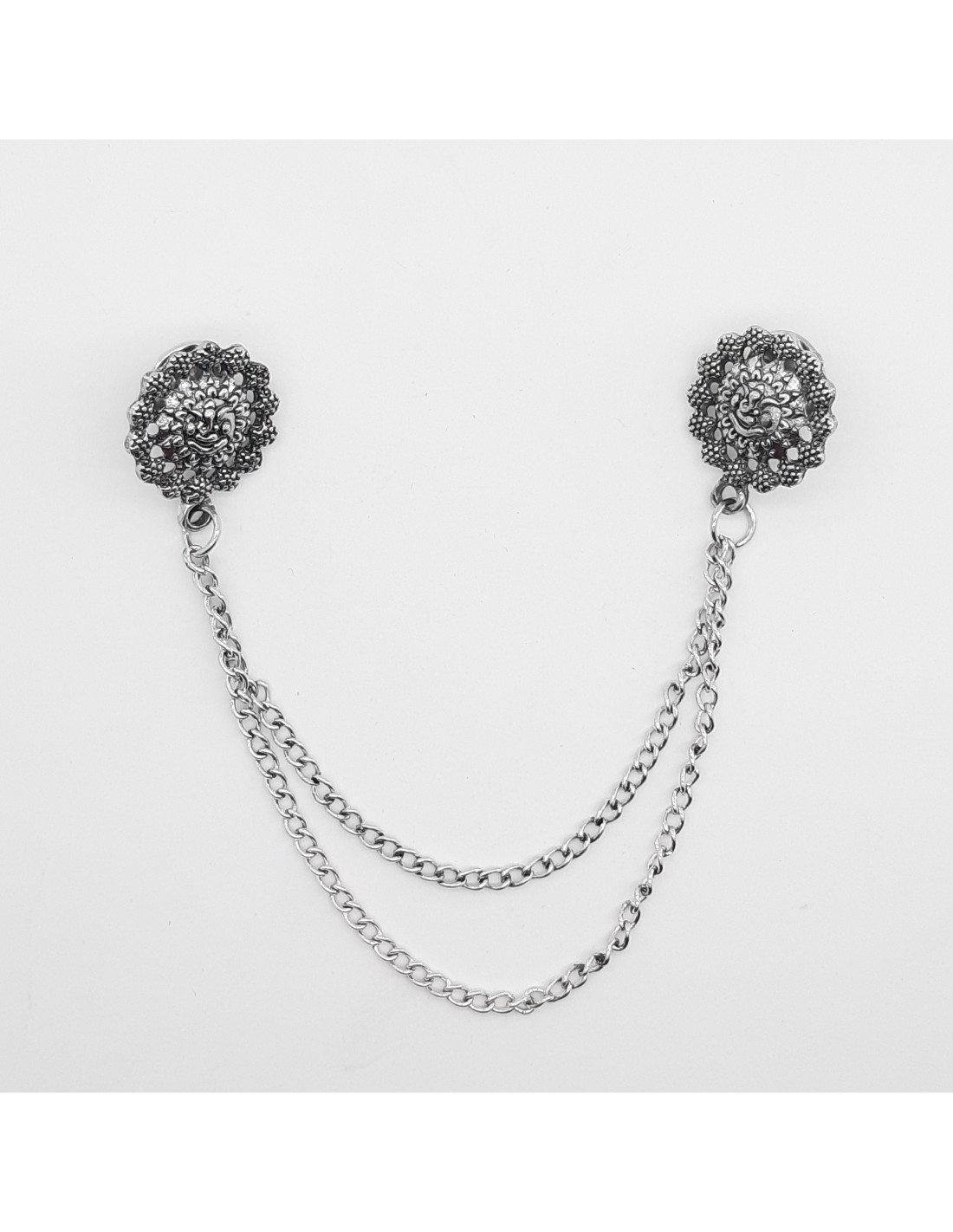 Broche decorativo de pin con cadena metálica de 12 cms.