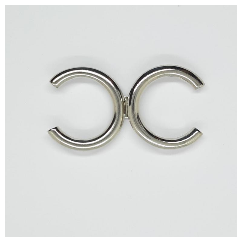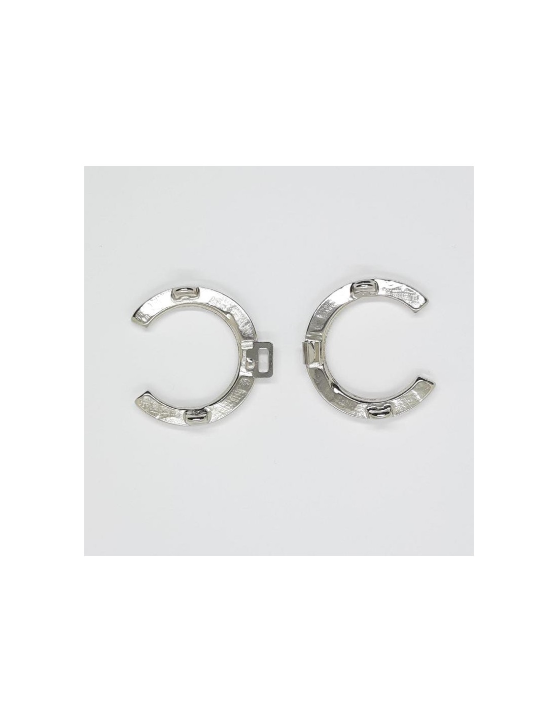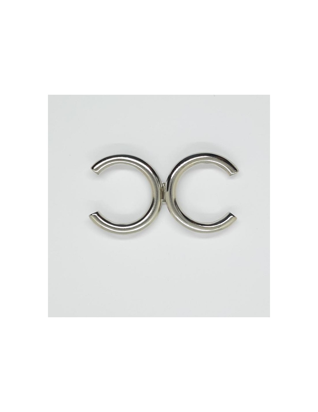 Broche metálico plateado de 6 x 3 cms. Cierre decorativo con dos piezas para coser.