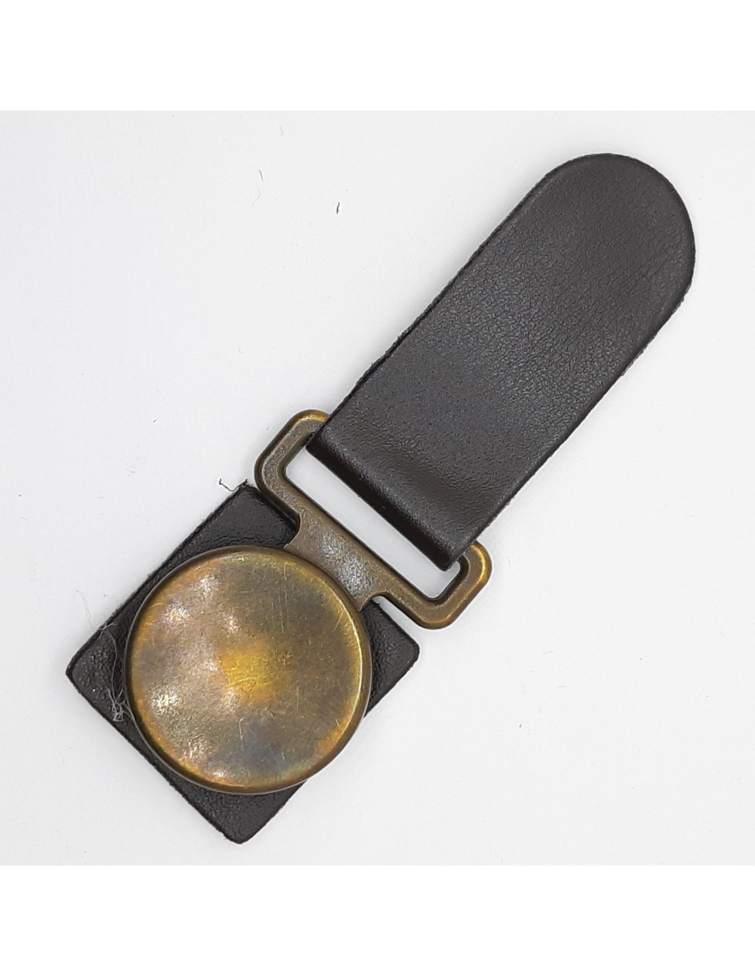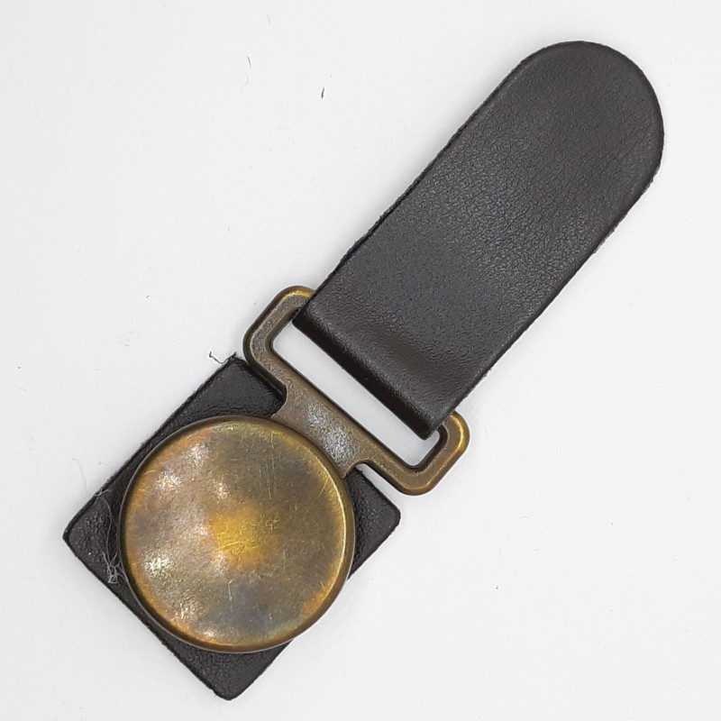 Cierre con broche de presión en piel de 8 cms con metal decorativo.