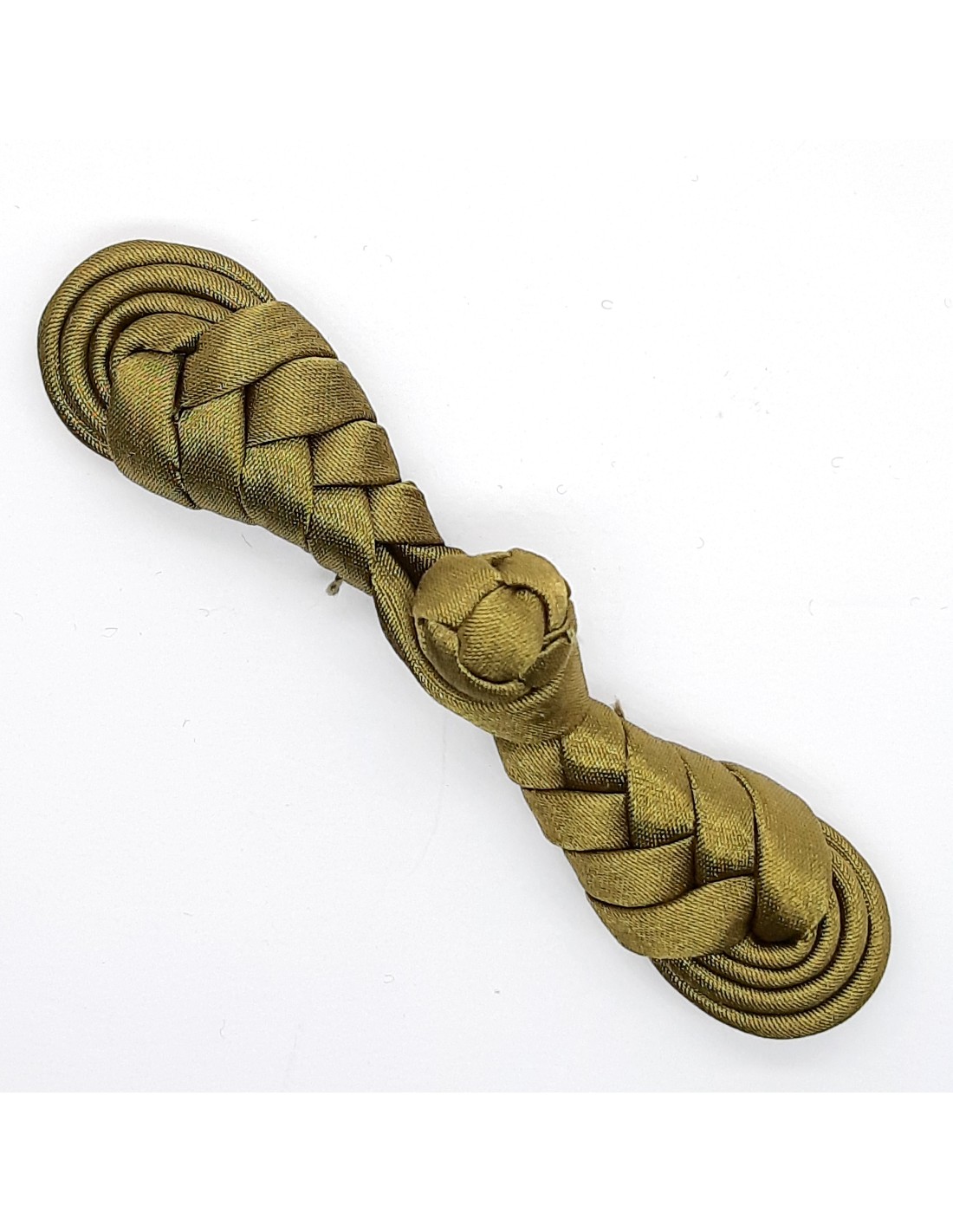 Broche cierre pasamanería de cintas de raso combinado en dos colores.