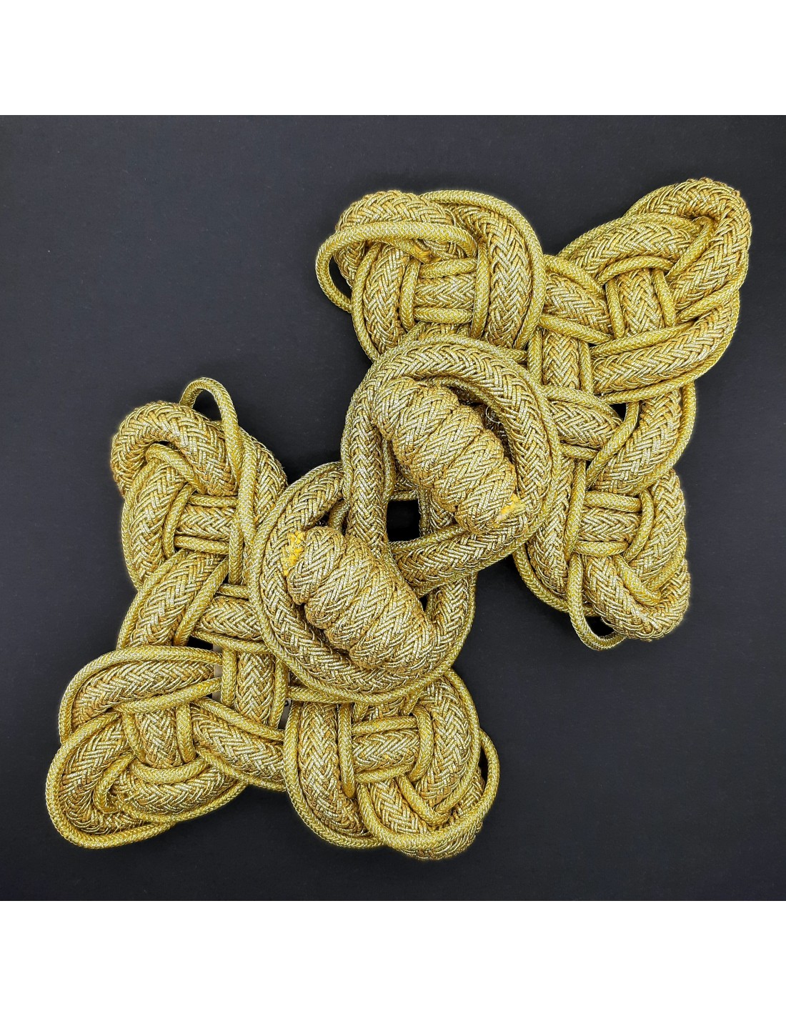 Broche alamar pasamanería metalizado dorado de 17,5 x 12,5 cms.