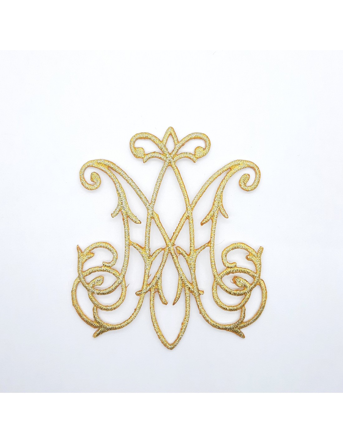 Aplique dorado metalizado termoadhesivo de 8 x 9 cms Ave María.