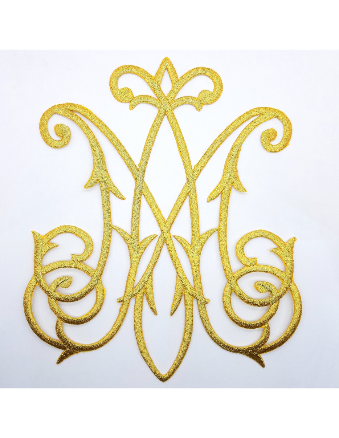 Aplique dorado metalizado termoadhesivo de 19 x 16 cms María.