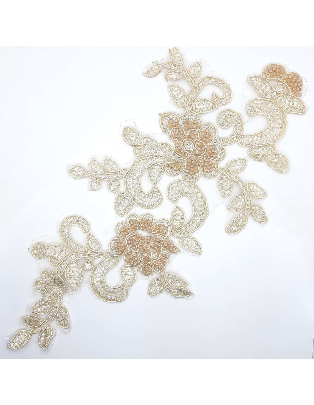 Aplicación bordada metalizada con rocalla de 10 x 25 cms.