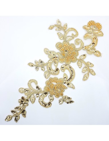 Aplique bordado metalizado con rocalla color oro de 10 x 25 cms