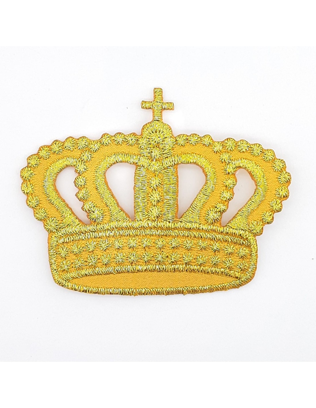 Motivo dorado corona termoadhesivo metalizado de 5 x 6,5 cms.