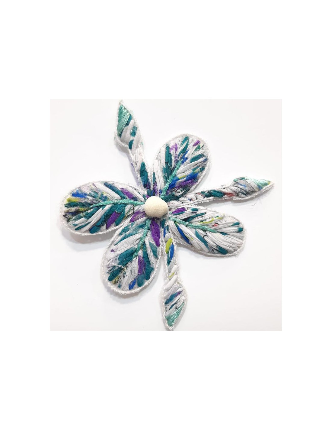 Flor de tela multicolor de 9 x 9 cms. Adorno decorativo.