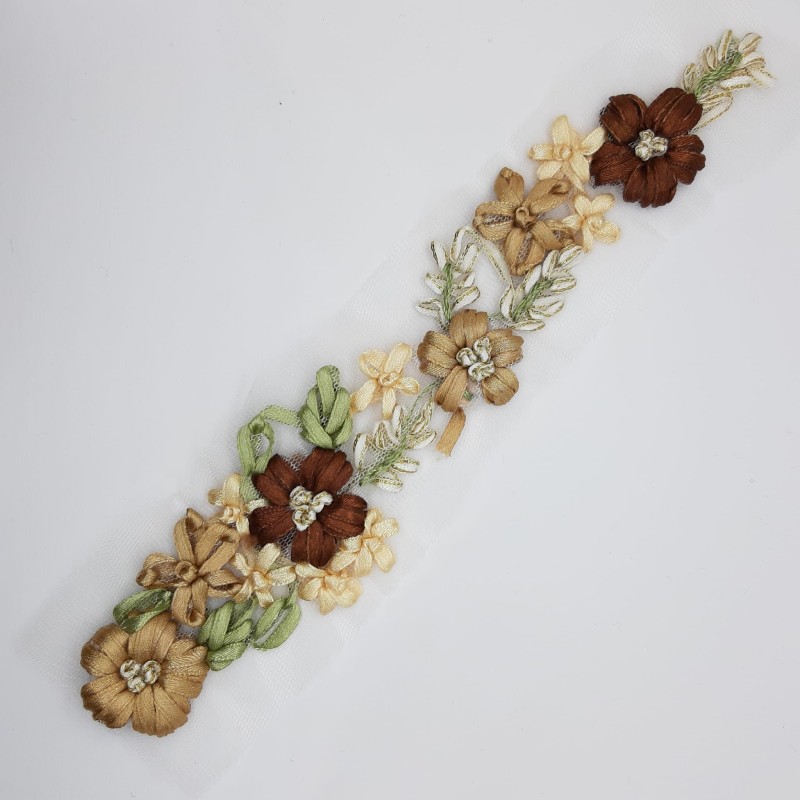 Estas preciosas aplicaciones, compuestas por una sucesión de pequeñas flores elaboradas con delicadeza, son el adorno perfecto para quienes buscan añadir un elemento romántico, bohemio o simplemente vibrante a sus proyectos. Disponibles en una variada paleta de combinaciones de color –desde tonos pastel y naturales hasta mezclas más alegres y llamativas–, se adaptan a un sinfín de estilos y ocasiones.