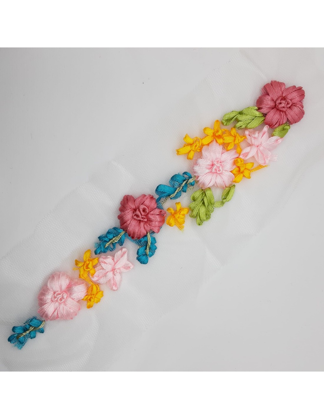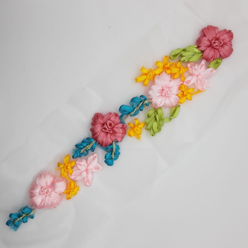 Estas preciosas aplicaciones, compuestas por una sucesión de pequeñas flores elaboradas con delicadeza, son el adorno perfecto para quienes buscan añadir un elemento romántico, bohemio o simplemente vibrante a sus proyectos. Disponibles en una variada paleta de combinaciones de color –desde tonos pastel y naturales hasta mezclas más alegres y llamativas–, se adaptan a un sinfín de estilos y ocasiones.