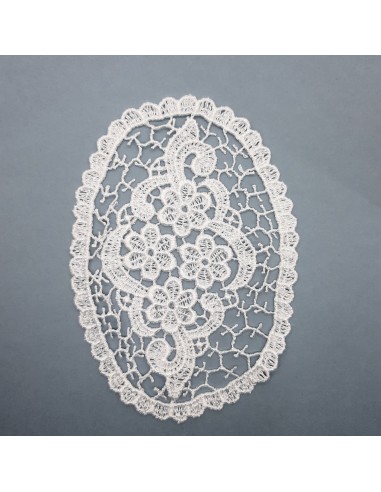 Aplicación de guipur calado de 13 x 9 cms con dibujo de flores.