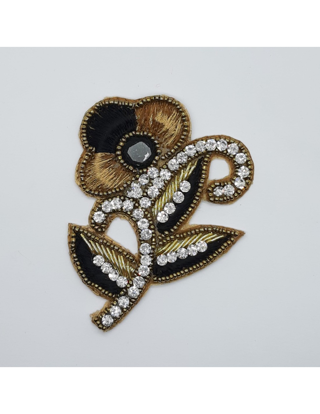 Aplique strass con flor bordada y piedras brillantes. Adorno con un diseño elegante y original, especial para darles a tus prendas y complementos tanto de fiesta como casual un toque único y personal. Ideal para chaquetas, vestidos, jerseys, pantalones, bolsos,... Pieza con posibilidades decorativas infinitas.