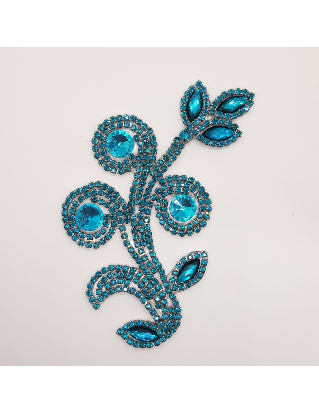 Aplique cristal strass termoadhesivo de 7,5 x 12 cms . Diseño flor con piedras brillantes.