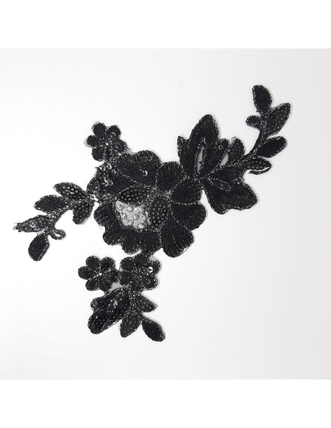 Aplicación de 15 x 10 cms. Dibujo de flor bordada termoadhesiva de lentejuelas.