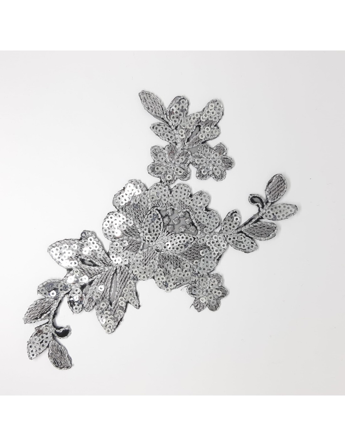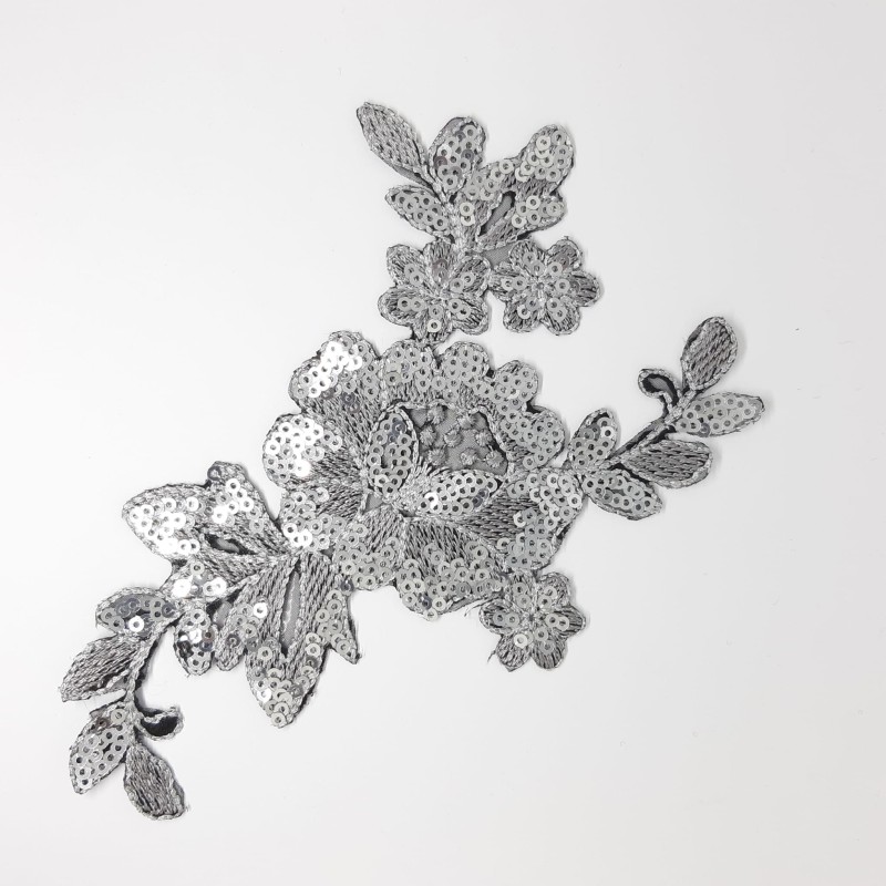 Aplicación de 15 x 10 cms. Dibujo de flor bordada termoadhesiva de lentejuelas.