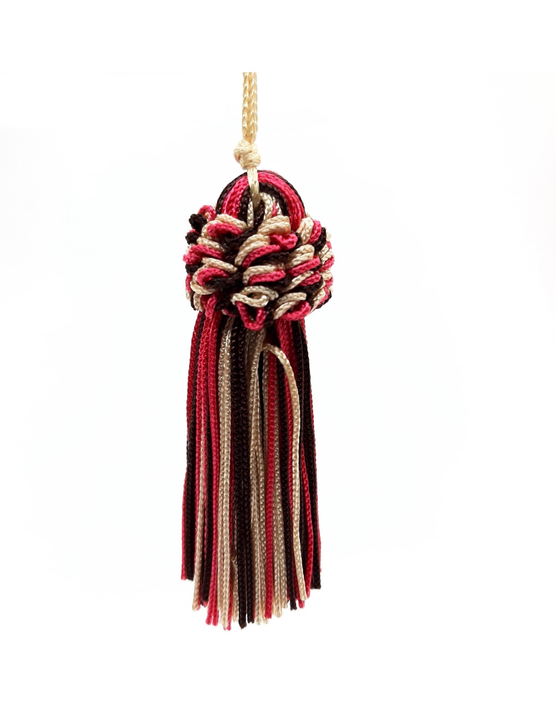 Borla cuquillo color fucsia, marrón y beige de 8 cms.