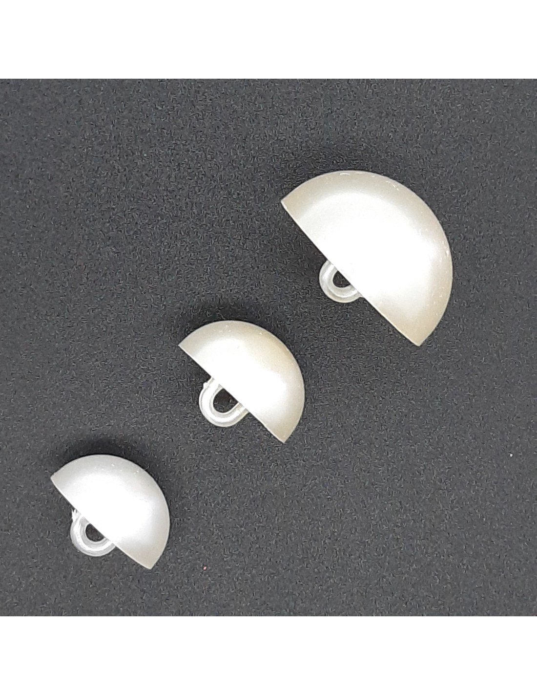 Botón color perla con pie y forma semi bola.