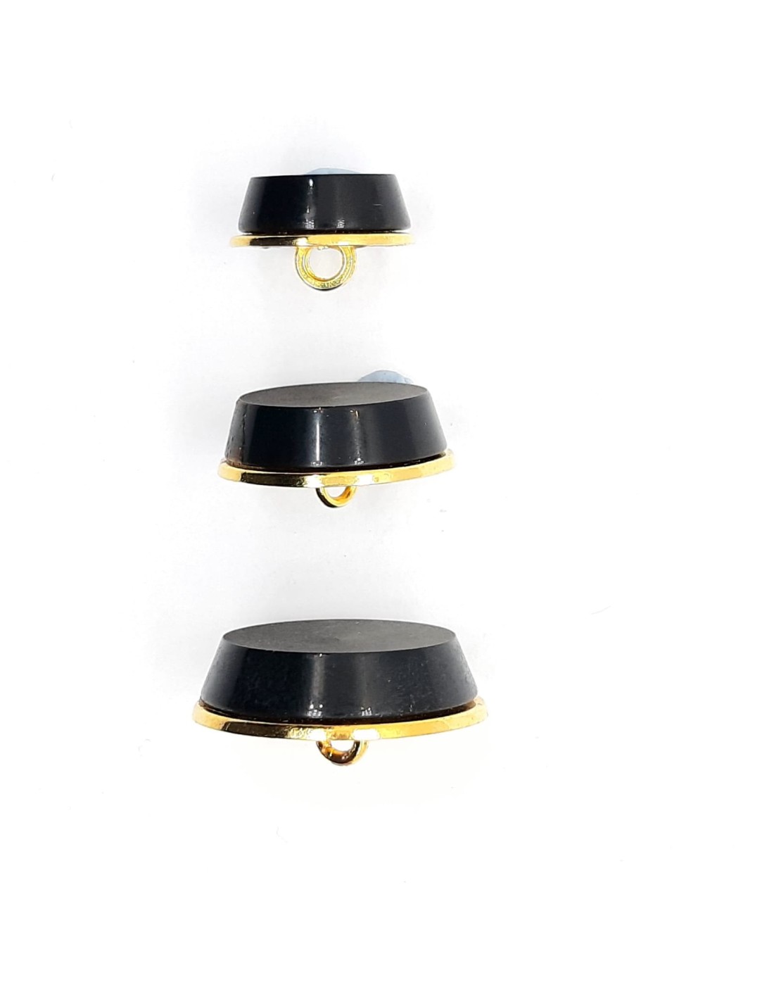 Botón decorativo con pie gris marengo mezcla mate y filo dorado de 5mm de grosor.