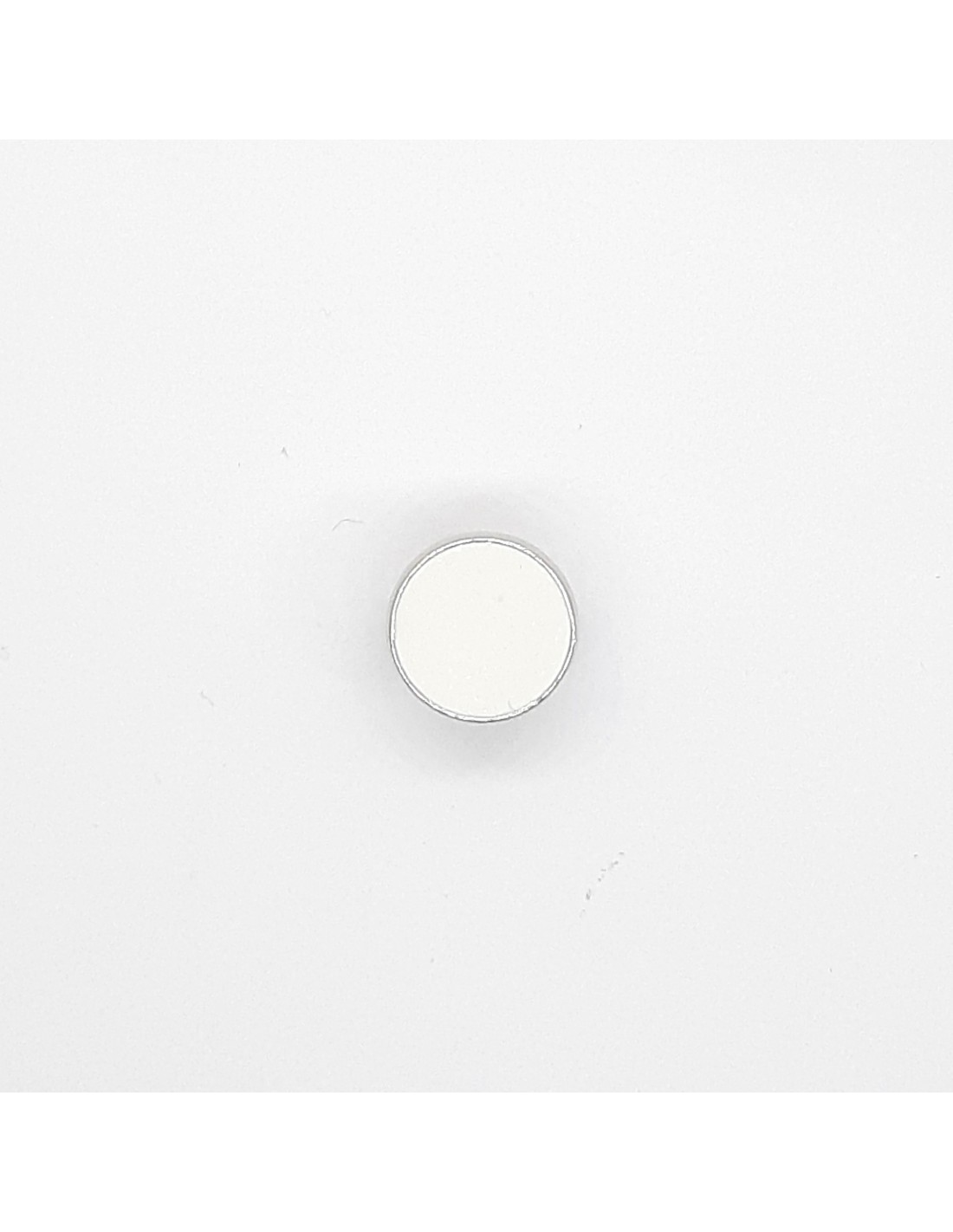 Botón esmaltado de color con filo decorativo plateado con pie. Botón camisero de tamaño 16 cosido por atrás. Fabricación Nacional.