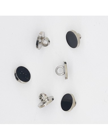 Botón esmaltado negro filo plata con pie. Fabricación nacional.