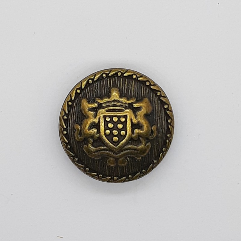 Dale un toque de distinción a tus prendas con nuestros botones metálicos de escudo envejecido. Perfectos para chaquetas, abrigos y cualquier proyecto que requiera un toque vintage.