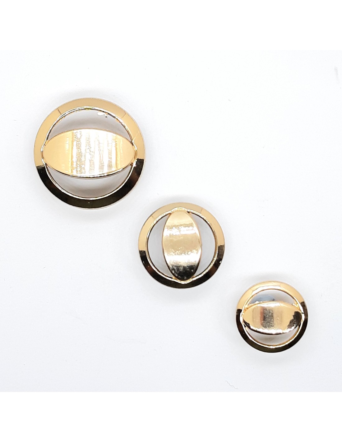 Botón metálico brillante redondo con un diseño casual.