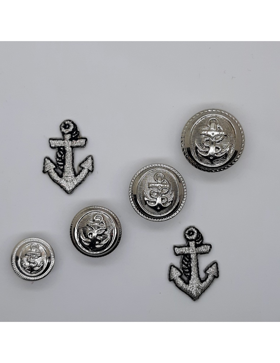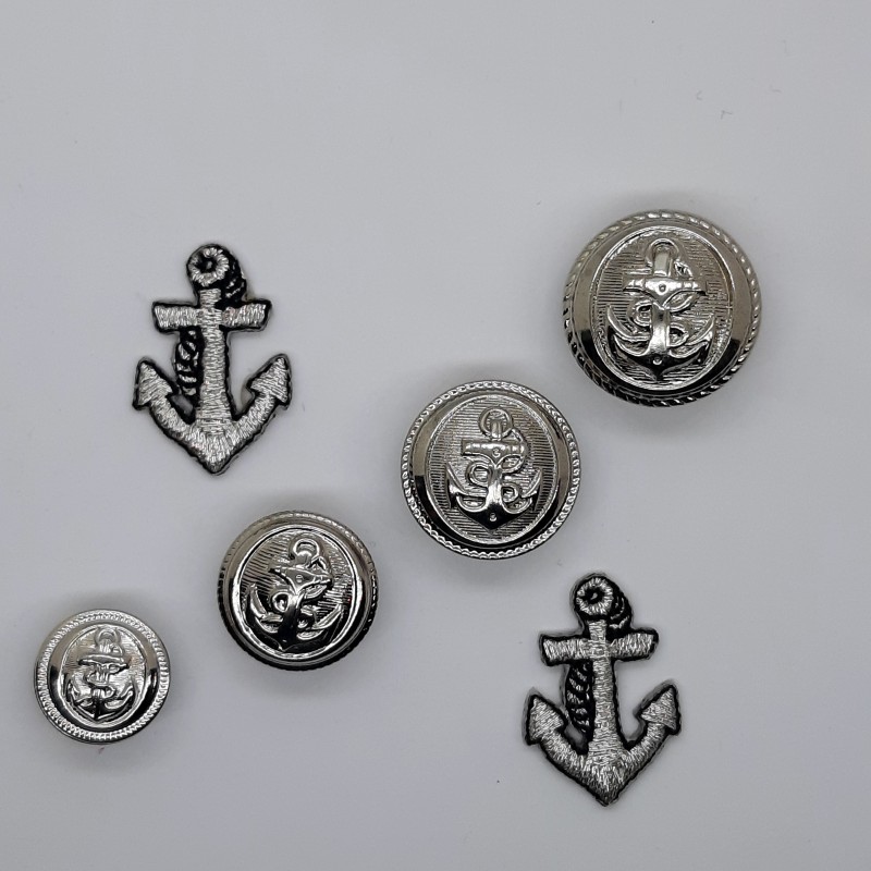 Botones con relieve de ancla metálico con pie. Fabricación nacional.