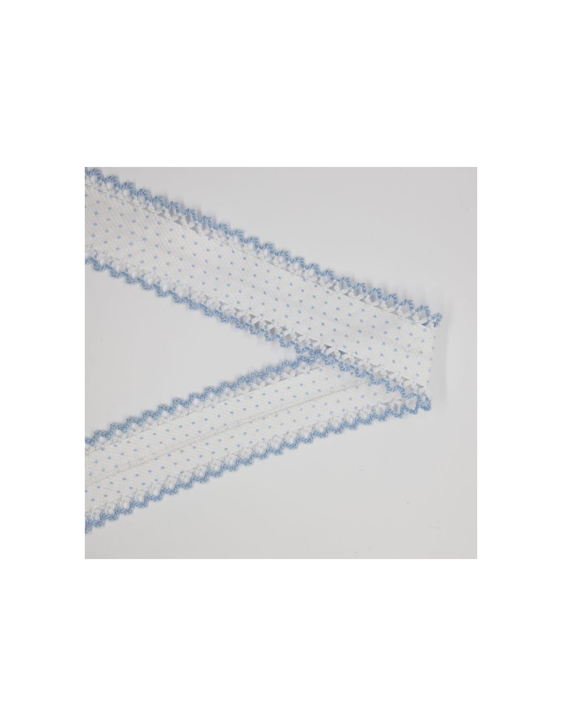 Bies de 3 cms, cinta de algodón con lunares y puntas decorativas.