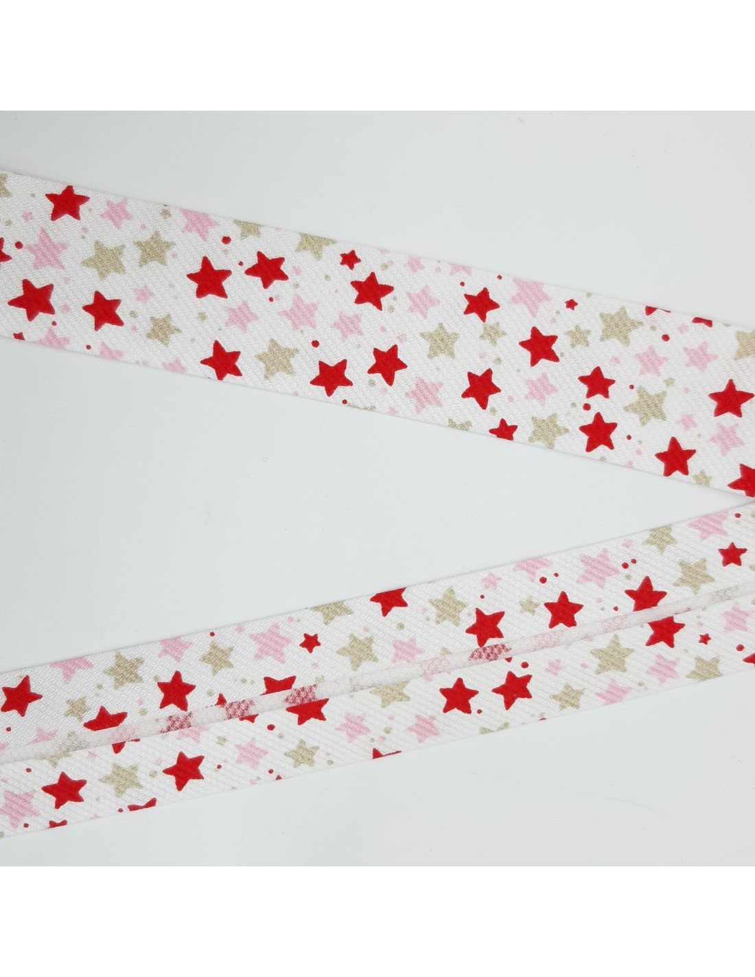 Cinta al bies piqué de Byetsa con estrellas decorativas. Adorno ideal para remates y acabados en prendas y complementos del hogar como juegos de cama y de toallas, cortinas,.. Pieza versátil para un sinfín de proyectos manuales, dándoles un toque único y personal.