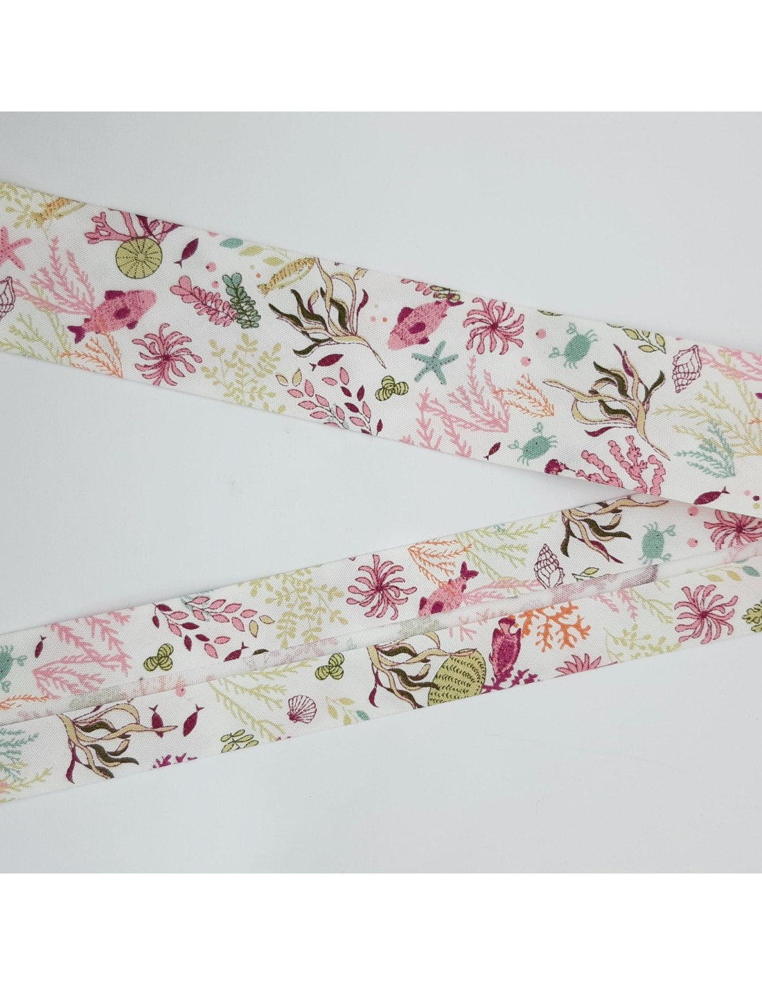 Cinta bies con estampado de fondo marino y tonos granate. De diseño juvenil y distinguido, ideal para remates y acabados en prendas y complementos del hogar como juegos de cama y de toallas, cestas, cortinas,.. y para muchísimos trabajos manuales, dándoles un toque único y personal que nunca te puede faltar.