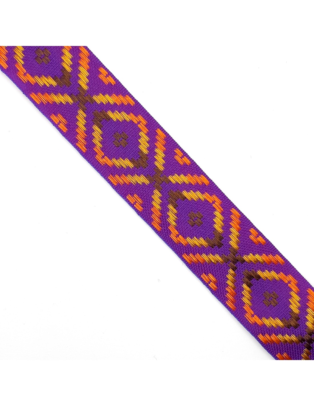 Galón tapacosturas morado con rombos decorativos de 2,5 cms