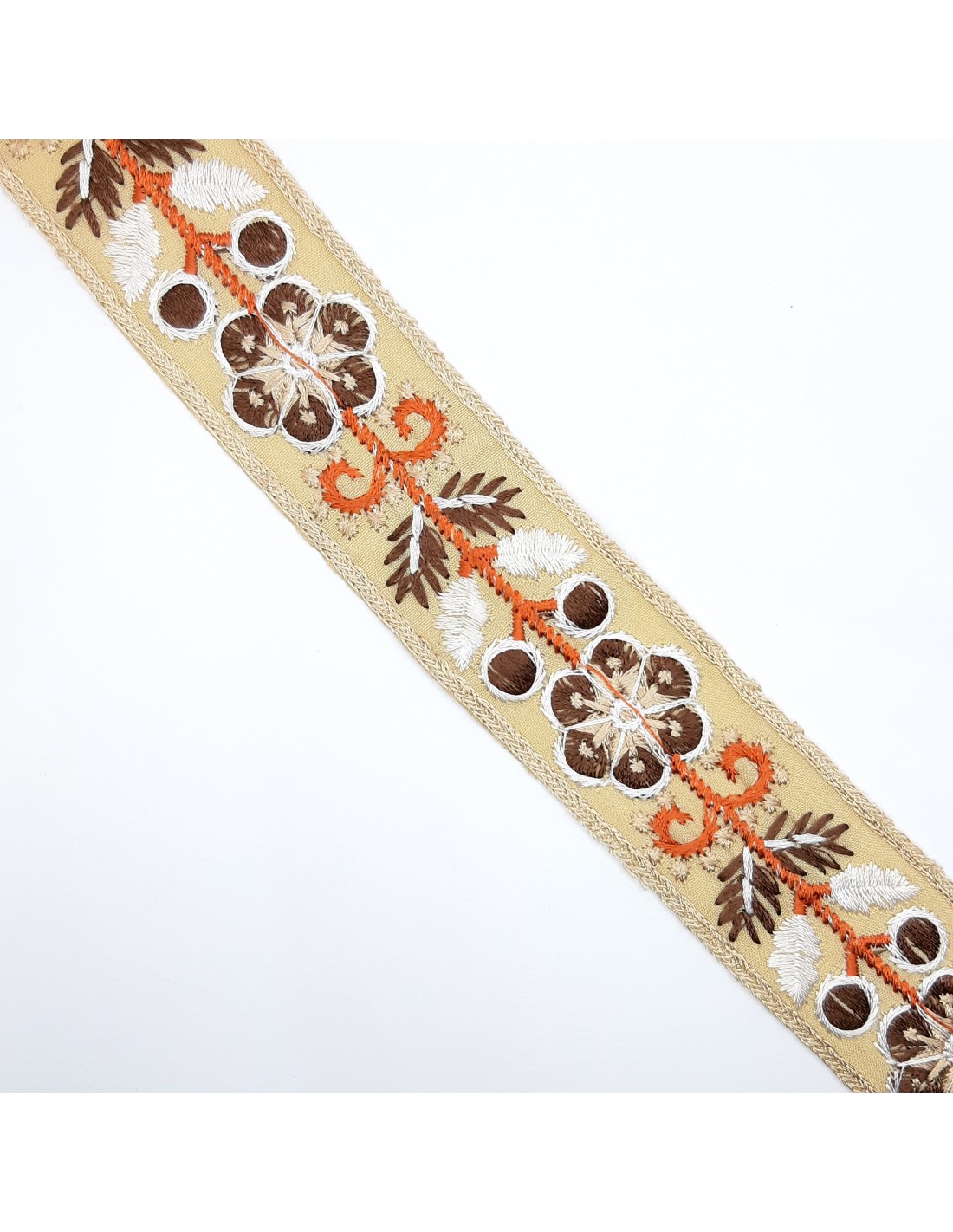 Galón tapacosturas cubrecosturas camel con flores bordadas 3,5 cms