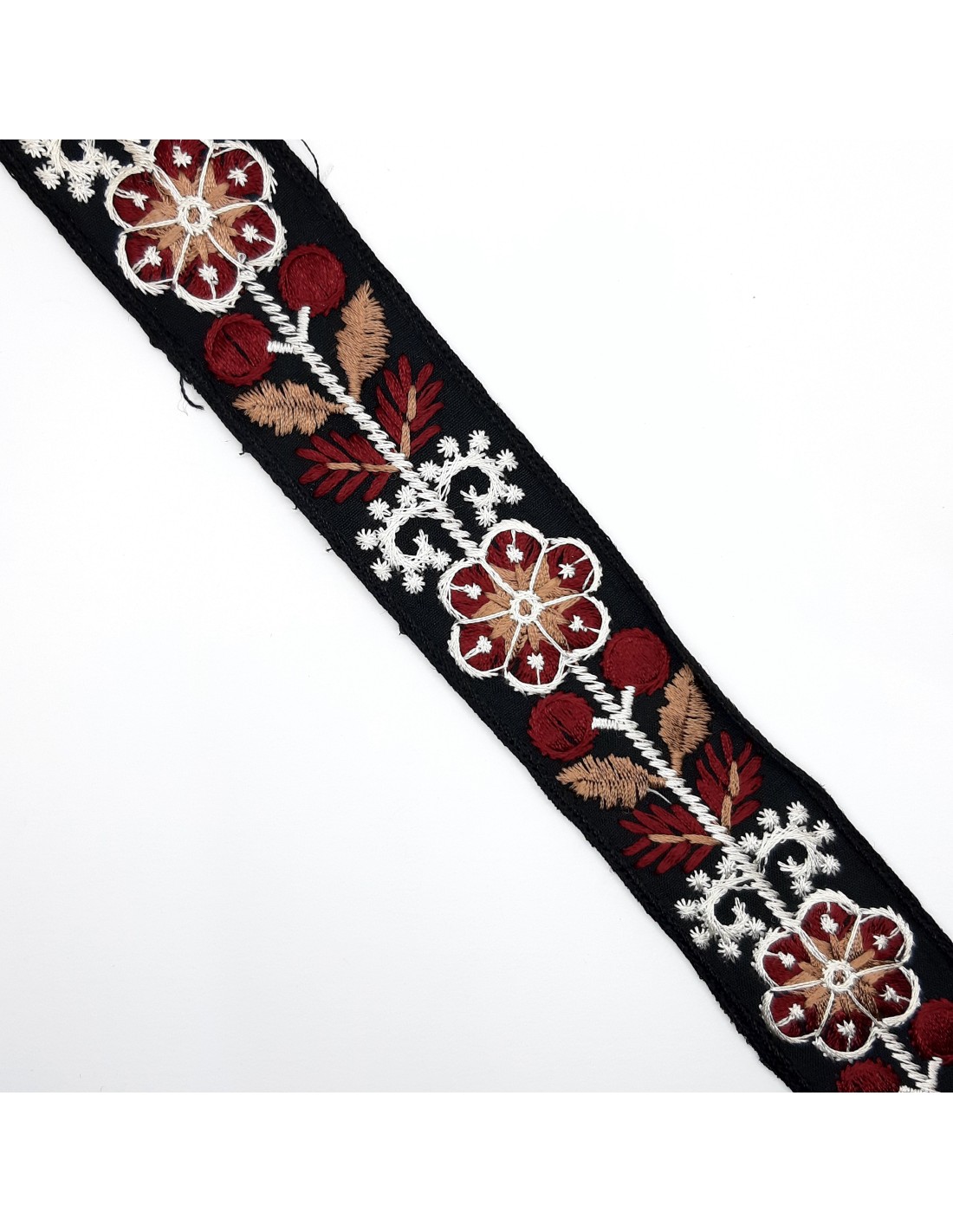 Pasamanería cubrecosturas con flores bordadas de 35 mm.