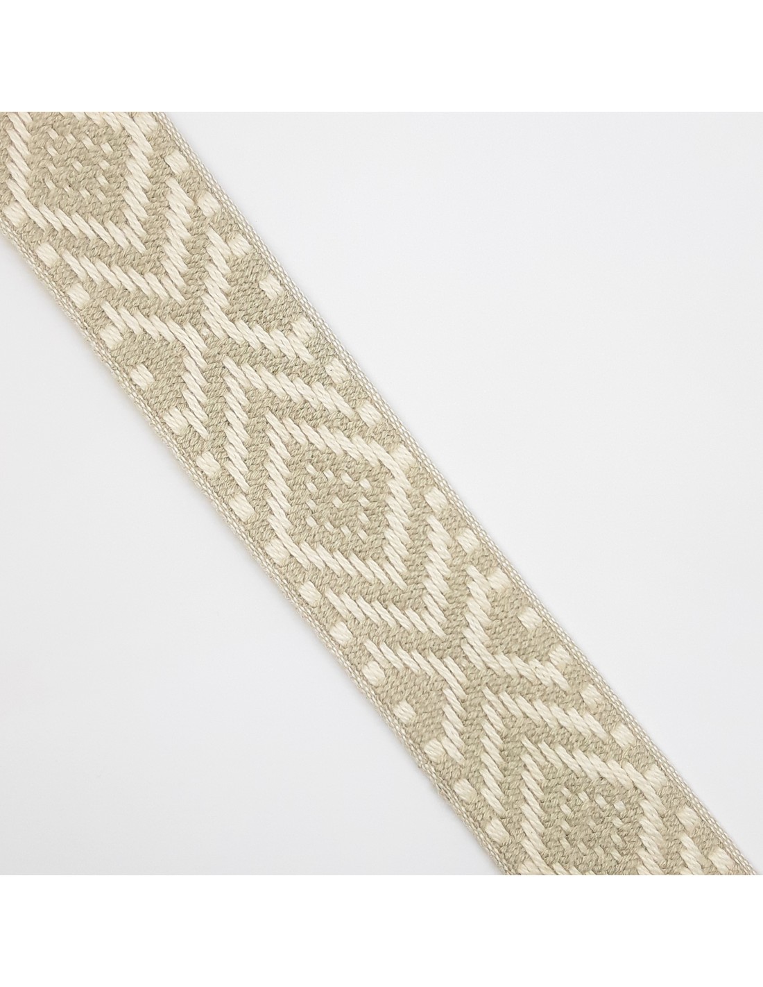 Galón tapacostura de algodón dibujo étnico con mezcla de colores lino y marfil de 30 mm.