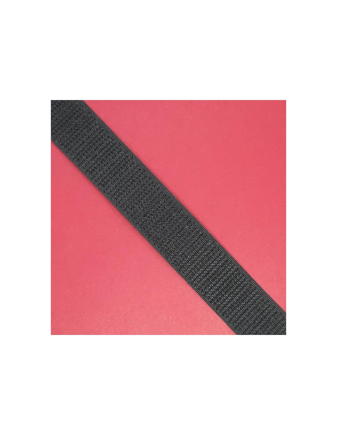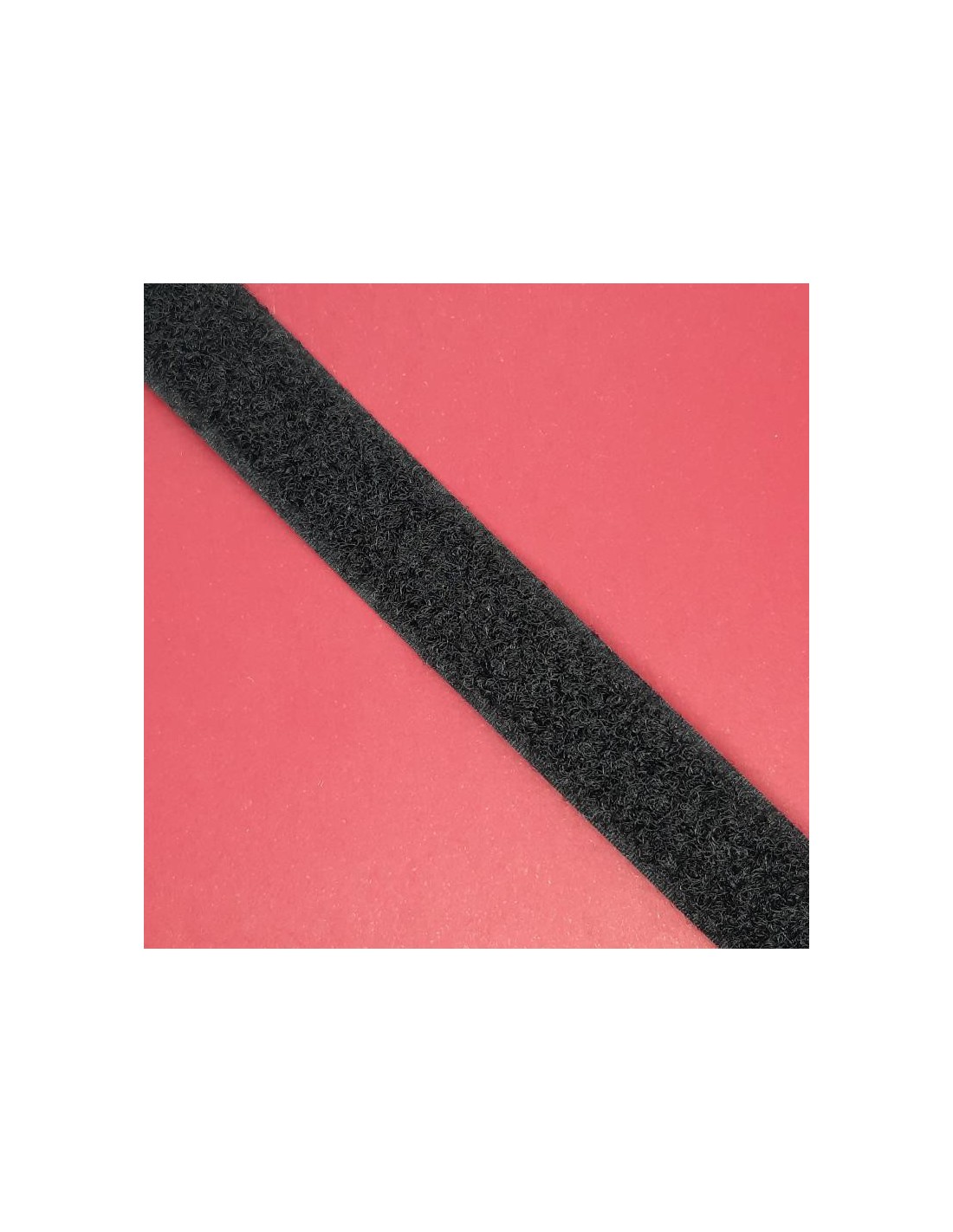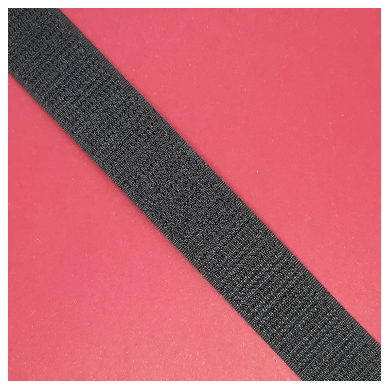 Velcro de 2 cms cosido de color negro. Cinta con dos partes macho (gancho) y hembra (suave).