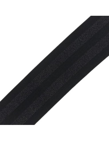 Cinta elástica suave de 4 cms. Pieza con dibujo de rayas negras metalizadas negras de 40 mm.