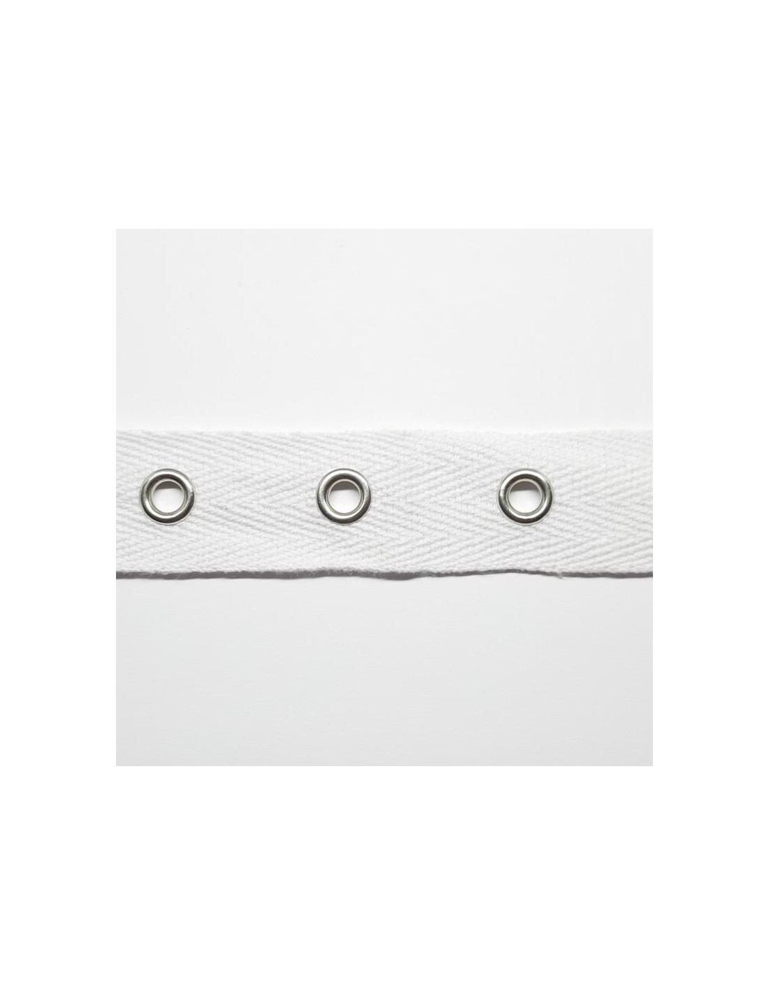 Cinta espiga algodón de 2 cms con ojales plateados decorativos.