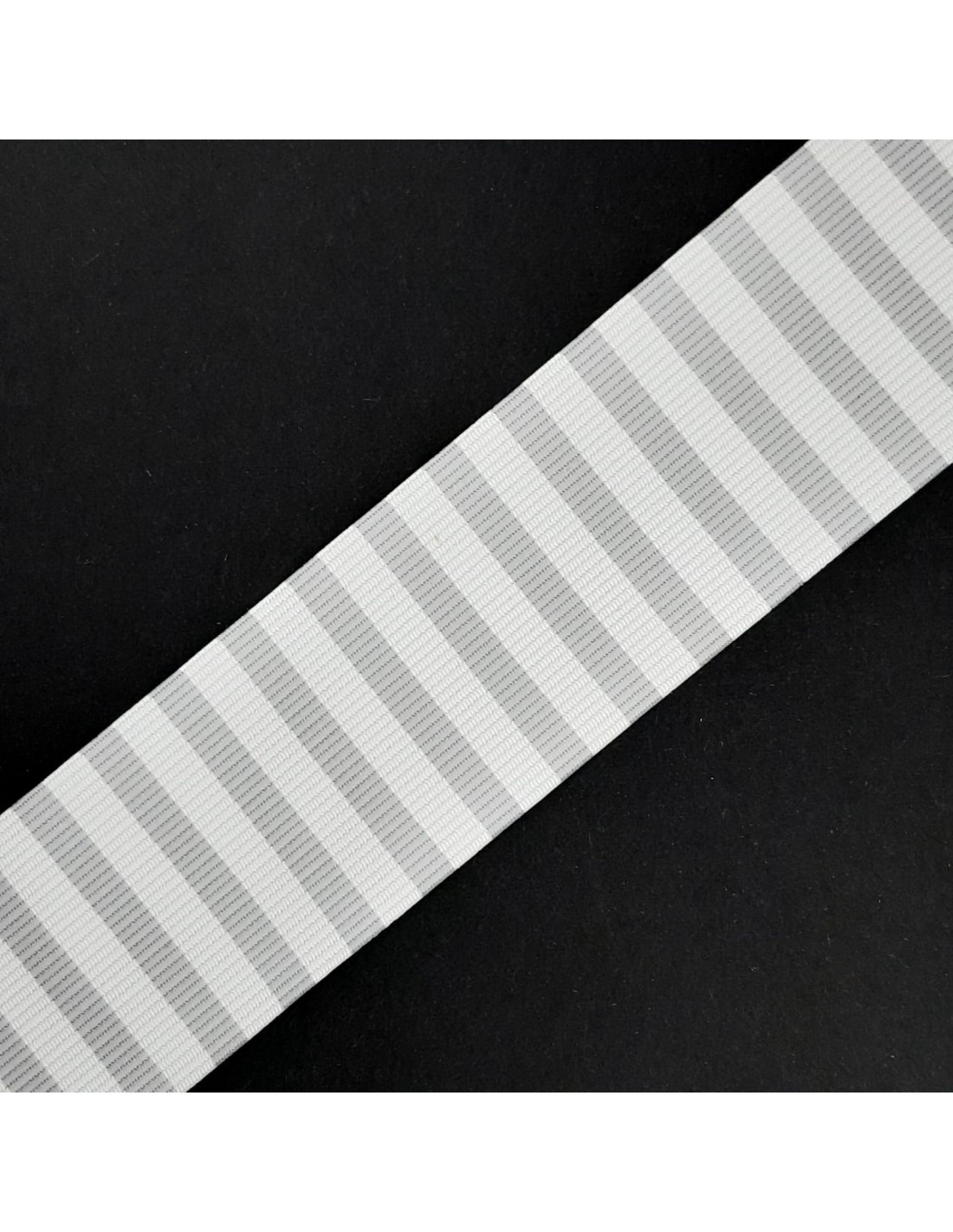 Cinta de faya con rayas verticales estampada de 4 mm y fondo blanco de 38 mm. Fabricación nacional.