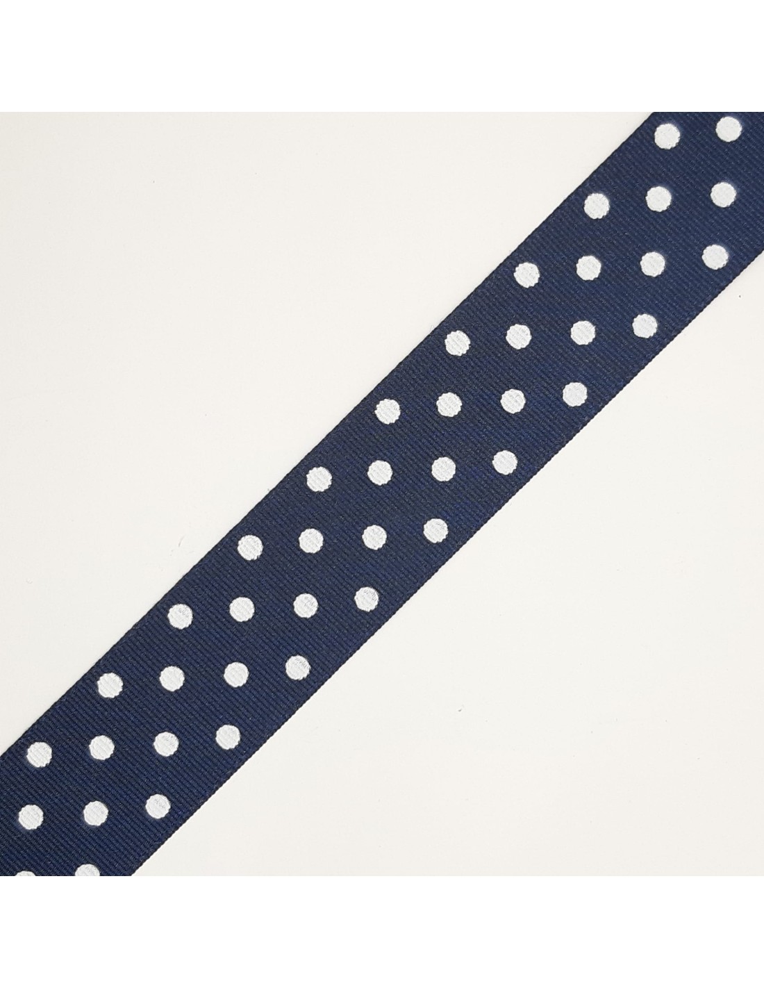 Cinta tafetán azul marino lunares blancos 2,5 cms