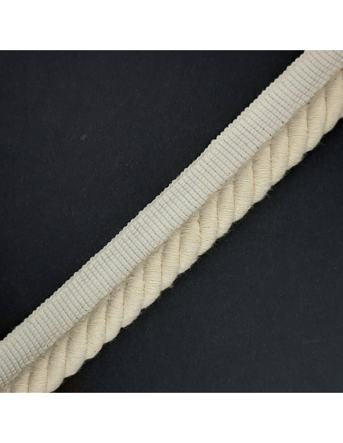 Cordón de algodón trenzado de 10 mm con pestaña para coser de color crudo.