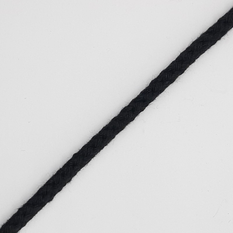 Cordón para castañuelas de 5 mm de color negro y 100 % algodón.