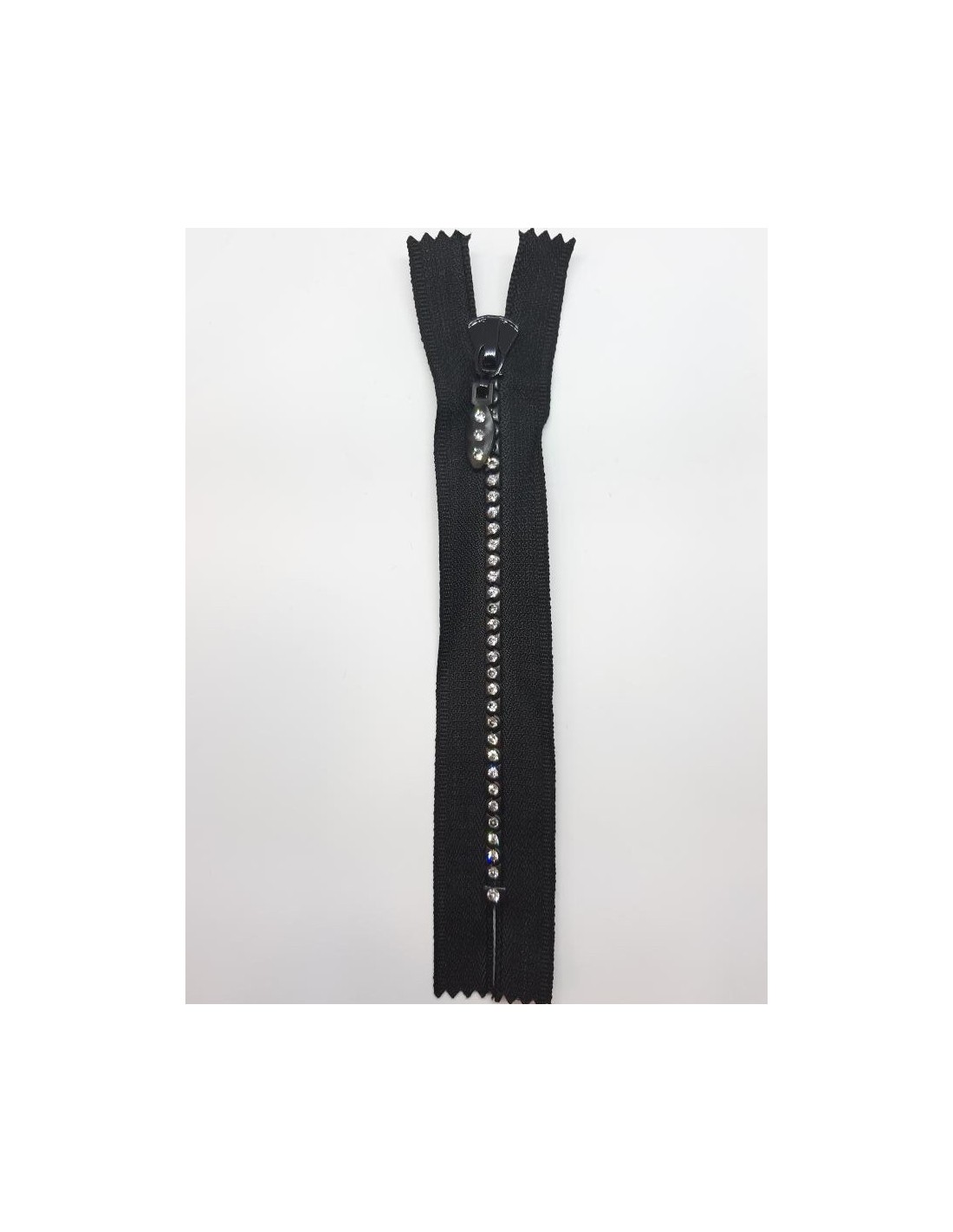 Cremallera fantasía de 15 cms, con dientes Strass decorativa.