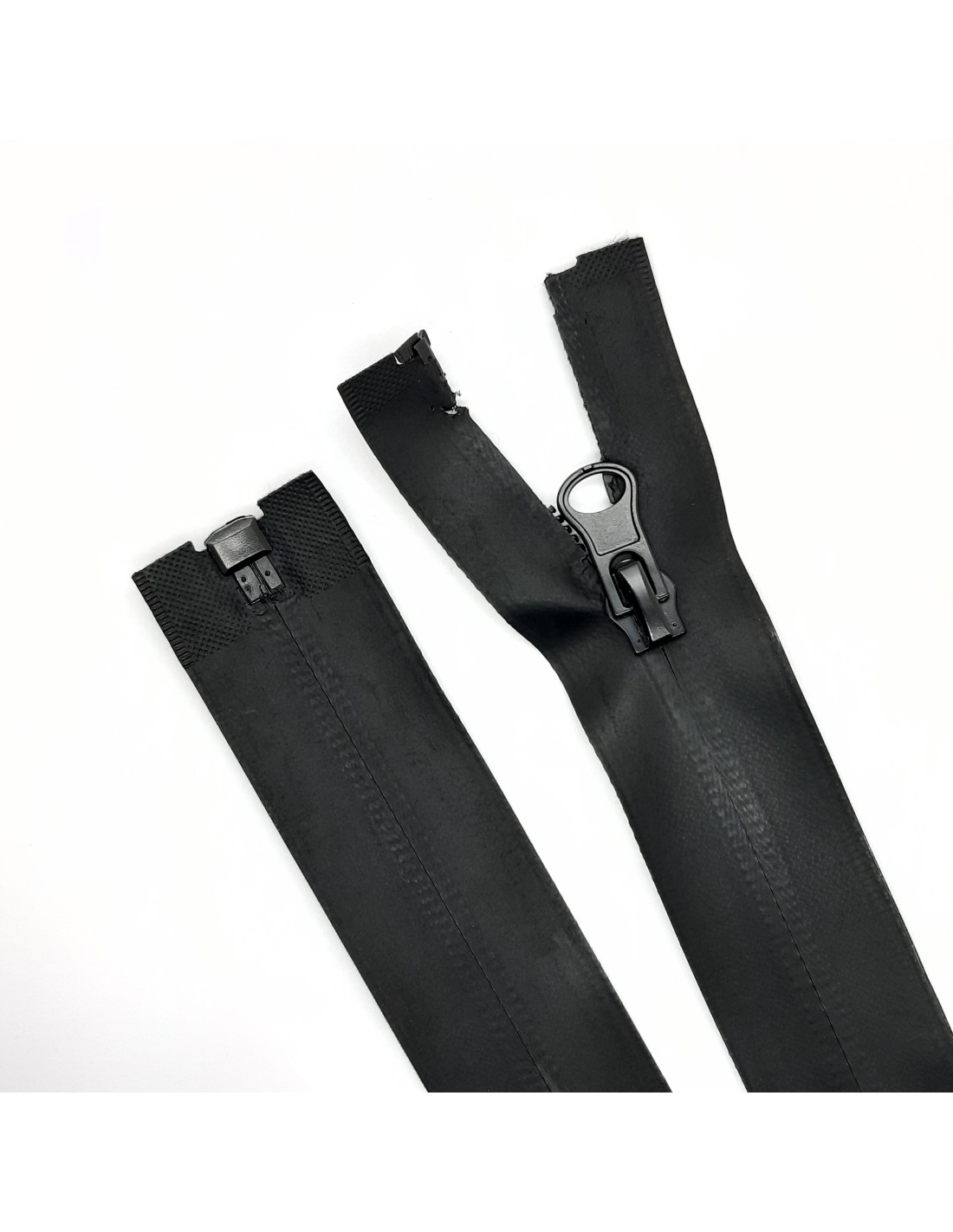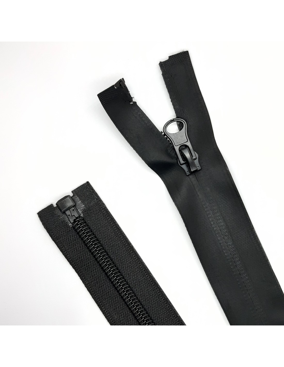 Cremallera impermeable malla 5 con diente invertido de 75 cms y color negro separador.
