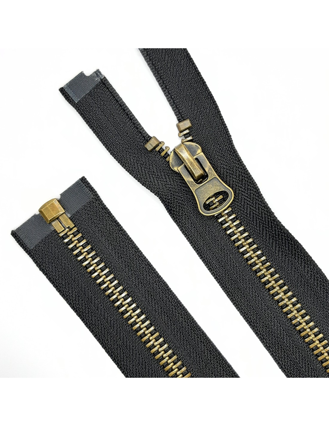 Cremallera malla 8 mm oro viejo metálica de 70 cms con separador negra.