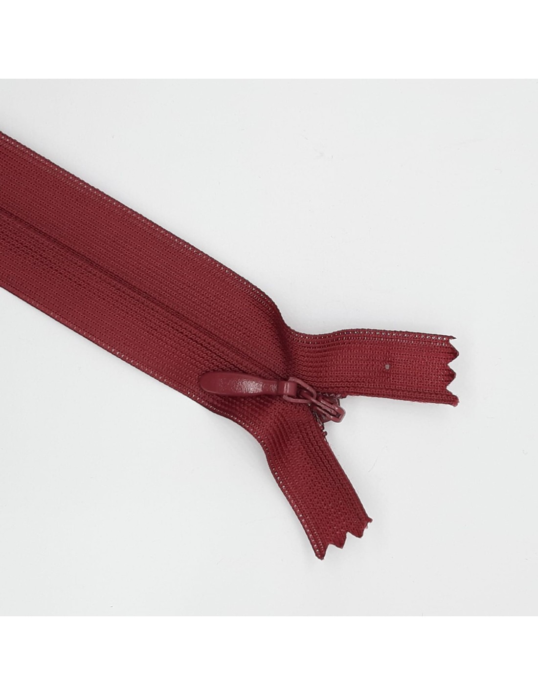 Las cremalleras invisibles tienen la particularidad de que al cerrarse quedan cubiertas por la tela, por lo que no se ven a simple vista y son muy útiles cuando se necesita esconder la cremallera o simplemente por razones estéticas, por ejemplo para vestidos o faldas. Al tener los dientes en el revés, por fuera solo se ve el tirador, nada más.