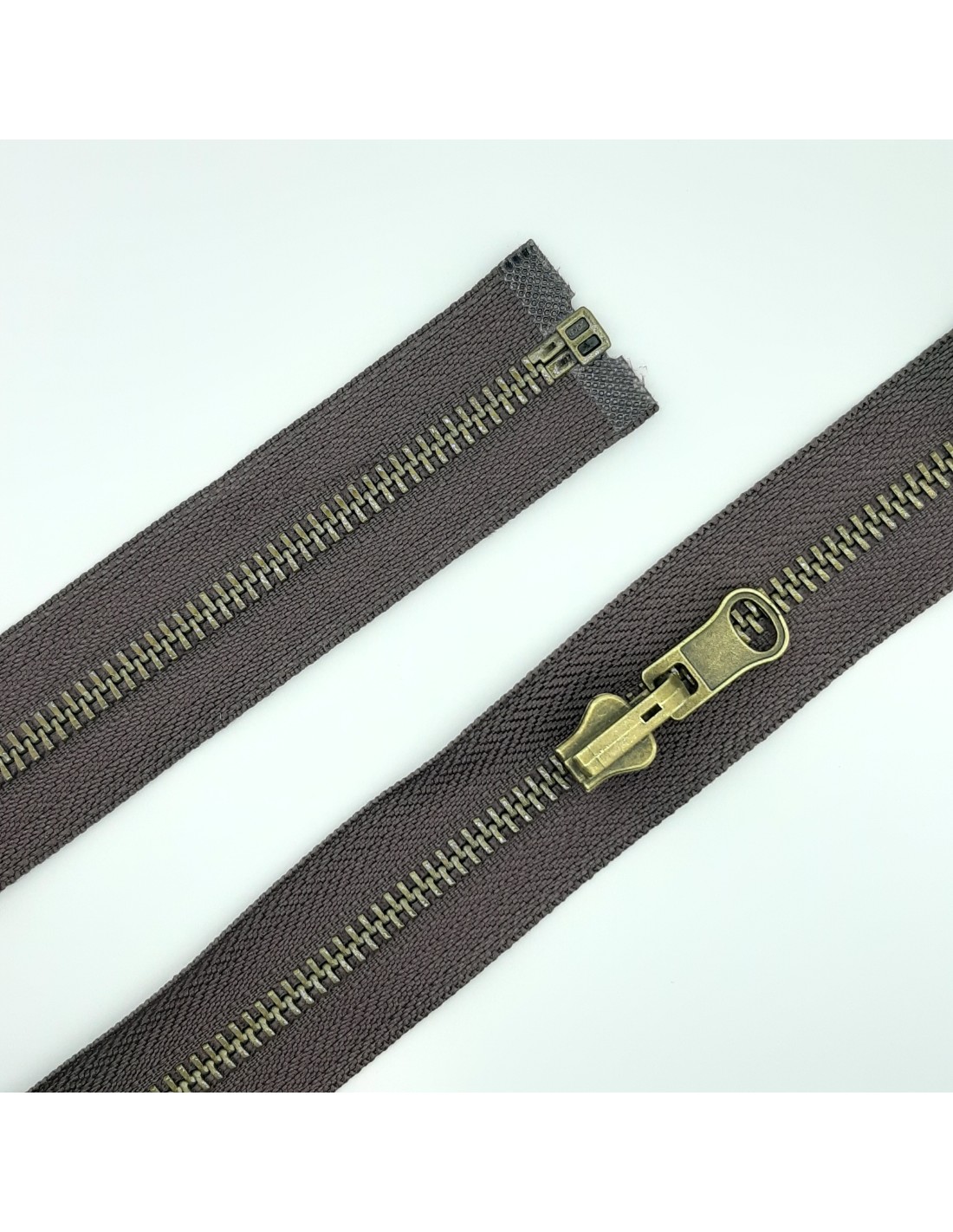 ¿Buscas una cremallera de alta calidad, versátil y con un toque de elegancia? Nuestra cremallera reversible con separador desmontable y malla 5 en color oro viejo es la elección ideal.