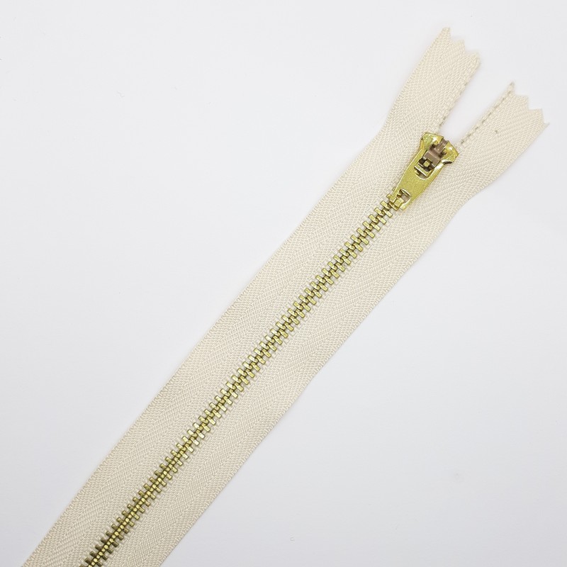 Cremallera de color con diente dorado de 16 cms. Especial para vaqueros, complementos y accesorios.