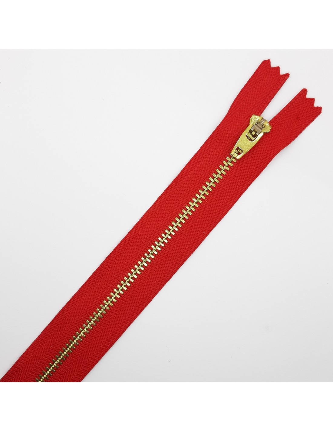 Cremallera de color con diente dorado de 16 cms. Especial para vaqueros, complementos y accesorios.
