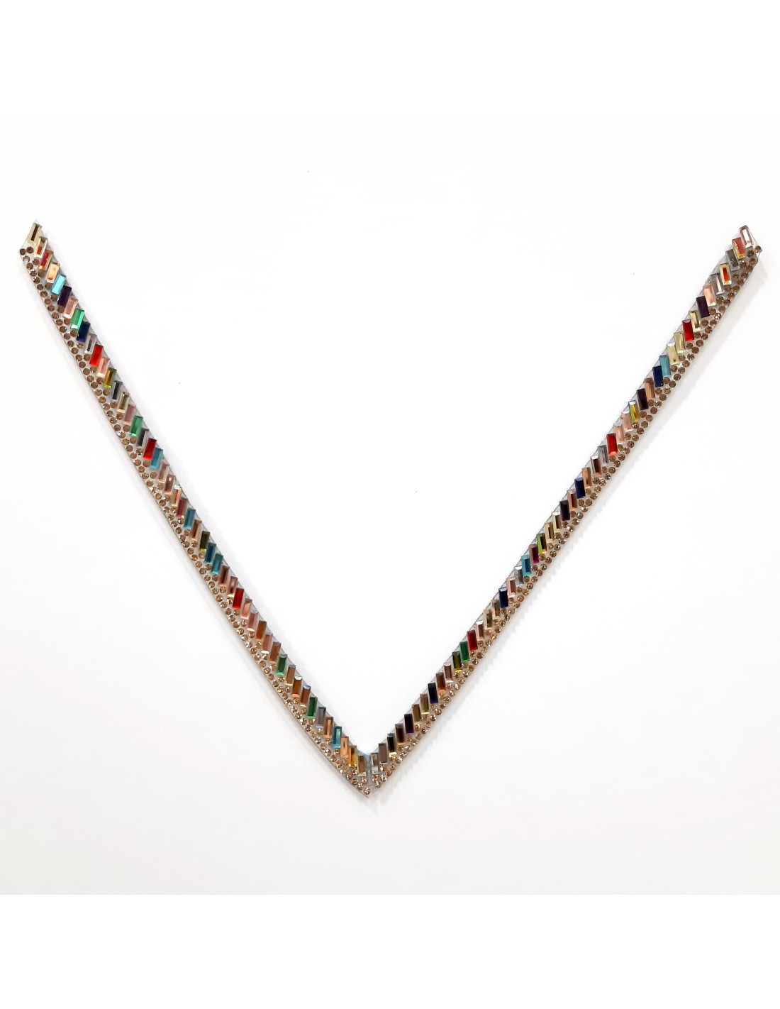 Cuello decorativo con cristales multicolor. Adorno termoadhesivo de fácil colocación.